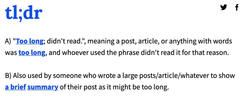 Ironically, this post is going to be TL, but hopefully it won’t be DR.