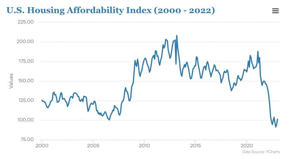 The Federal Reserve began raising mortgage rates in March 2022 and, ultimately, raised them at the fastest rate in history. There has been lots of discussion about this, both that they perhaps started too late and then rose too quickly and too high but, for the purposes of this discussion, that doesn’t really matter. Those much higher rates, along with general costs that have risen due to inflation and a large increase in home valuations has made it very, very difficult for first time home buyers to find something they can afford. Simultaneously, rent has also increased dramatically, due to inflation, low available of new rental properties, and just general profit taking. A lot of the folks in my classes are parents of teenagers or young adults just entering the workforce and are lamenting their prospects for being able to afford a place to live. Again, this is a real issue, although I’m also in the camp that home-ownership is often not the right choice for people (especially when they are first starting out).