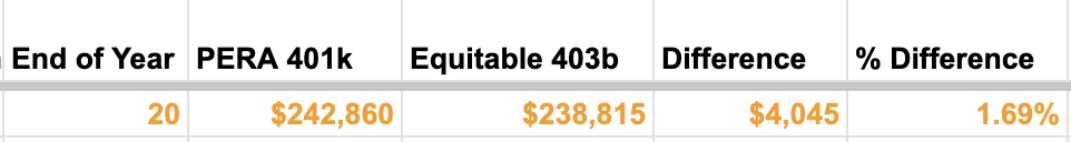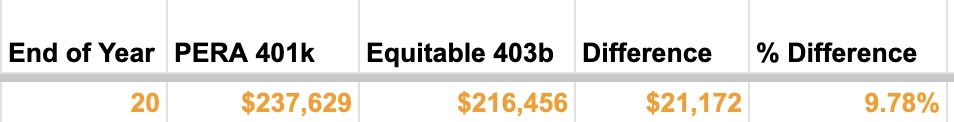 Now let’s do the same if you take the most expensive option that PERA and Equitable offer.