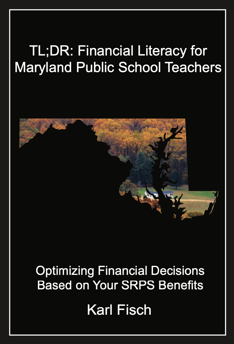 I just wanted to share my latest book, this one for teachers in Maryland Public Schools, focusing on financial literacy and making the most of their SRPS pension benefits. Screenshot Please consider sharing with any educators you know in Maryland. This is the latest in the TL;DR Financial Literacy series. If you know educators in … Continue reading TL;DR: Financial Literacy for Maryland Public School Teachers: Optimizing Financial Decisions Based on Your SRPS Benefits