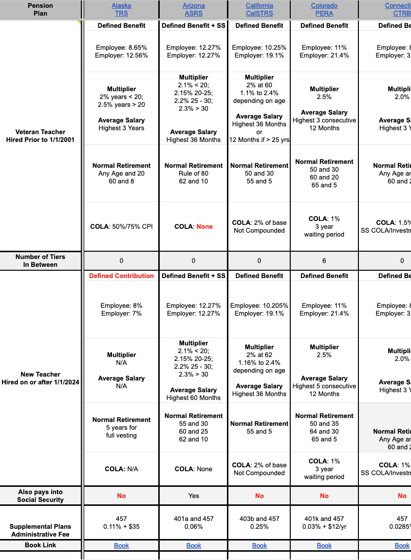 Now that we're up to 37 books about various teacher pension plans (plus one standalone book for young adults), I sometimes get asked, "So, who has the best pension?" My answer is, probably unsurprisingly and definitely disappointingly, "It depends." While most teacher pension plans have many things in common, the details really matter. And those … Continue reading Who Has the Best Pension?