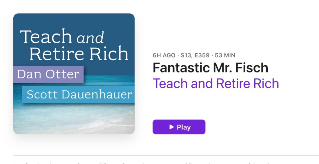 Dan and Scott had me back on the Teach and Retire Rich podcast for those who might be interested. Apple Podcasts Direct link to the podcast on their site 403bwise 403bwise state 457 ratings Items mentioned in the podcast. Time to Buy! Buy! Buy! (Service Credit, 2025 Edition) (purchasing service credit) Our Current Portfolio and … Continue reading Appeared on the Teach and Retire Rich Podcast