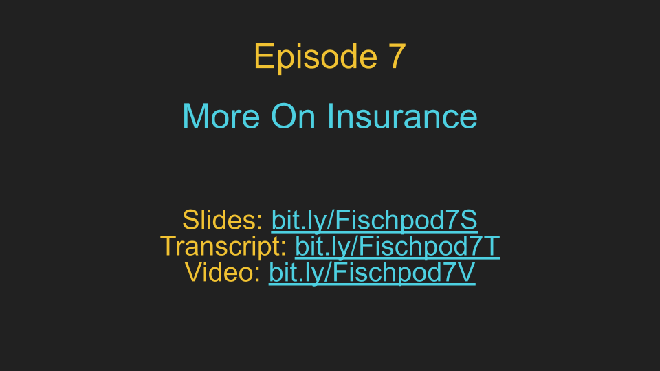 I just released Episode 7 of the Teaching You To Fisch podcast. This episode continues our look at insurance, but looks at the insurance you typically get on your own (car, home, life, and long-term care insurance) instead of through your employer. Slides Transcript It's available on Spotify, Apple Podcasts, and YouTube, and I've also … Continue reading Podcast Episode 7: More On Insurance
