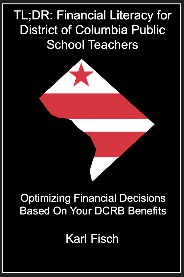 I just wanted to share my latest book, this one for educators in the Washington DC Public Schools, focusing on financial literacy and making the most of their DCRB pension benefits. Please consider sharing with any teachers you know in the District of Columbia. This is the latest in the TL;DR Financial Literacy series. If … Continue reading New Book: TL;DR: Financial Literacy for District of Columbia Public School Teachers: Optimizing Financial Decisions Based on Your DCRB Benefits