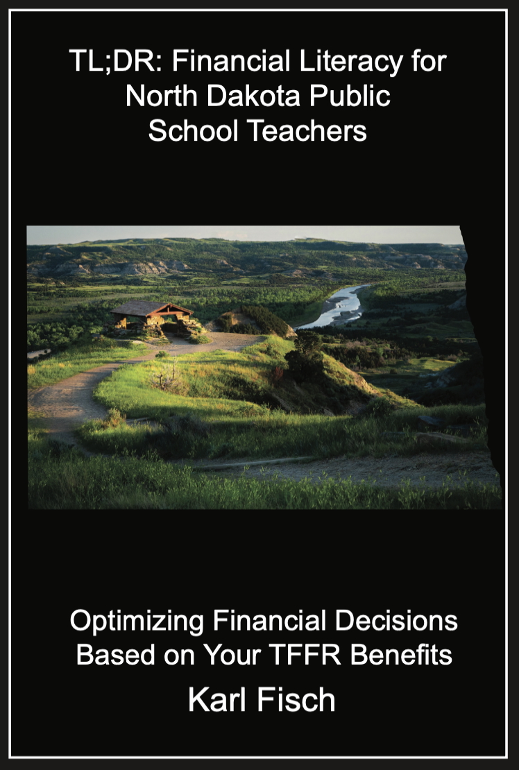 I just wanted to share my latest book, this one for teachers in North Dakota Public Schools, focusing on financial literacy and making the most of their TFFR pension benefits. Please consider sharing with any educators you know in North Dakota. This is the latest in the TL;DR Financial Literacy series. If you know educators … Continue reading TL;DR: Financial Literacy for North Dakota Public School Teachers: Optimizing Financial Decisions Based on Your TFFR Benefits